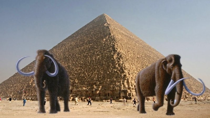 В то время, когда возводились первые пирамиды, шерстистые мамонты всё ещё ходили по Земле. Основная популяция этих гигантов вымерла около 10 000 лет назад, однако небольшая колония, насчитывавшая примерно 1000 особей, выжила на маленьком арктическом острове, известном как остров Врангеля. Археологи установили, что эти мамонты обитали там вплоть примерно до 1650 года до нашей эры. Это почти на тысячелетие позже строительства Великой пирамиды в Гизе.
