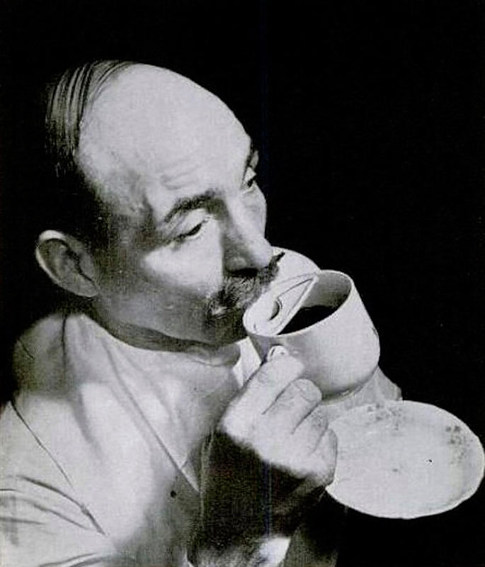 Эти чашки, известные как усатые, были изобретены в 1860-х годах британским гончаром Харви Адамсом. Такие изысканные чашки предохраняли усы джентльменов от намокания в чае или горячем шоколаде.