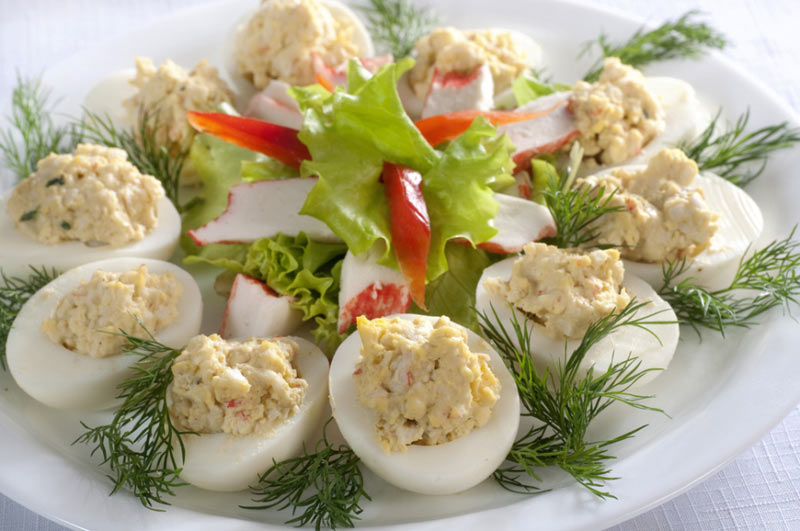 Эта закуска считалась относительно сложной, поэтому её готовили в основном по праздникам. Тем не менее, именно благодаря продажам в пивных фаршированные яйца прочно врезались в народную память. Делали их так: яйца варили, чистили, разрезали пополам. Желтки вынимали и смешивали с плавленым сырком или какой-нибудь консервой, а потом эту массу клали обратно. К тому же закуска обходилась недорого: десяток яиц стоил 80 копеек, а сырок — около 15.