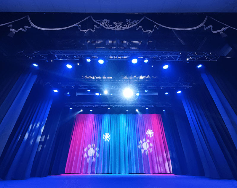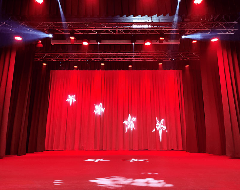 Spot может давать четкий круг света, менять размер пятна, фокусироваться, проецировать узоры и логотипы через гобо. В более продвинутых приборах есть шторки, которые позволяют “обрезать” свет и сделать пятно не круглым, а, например, прямоугольным или трапециевидным.