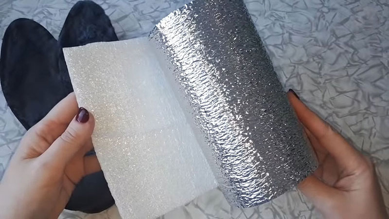 Все-таки фольга – это больше «любительский» способ согреть ноги. А вот если вы хотите подойти к вопросу более основательно, нужно сходить в строительный магазин. Спросите у консультанта, есть ли в наличии вспененный полиэтилен с фольгированным покрытием. Этот материал часто используют для утепления стен или труб. Такой полиэтилен плотнее и прочнее, чем фольга, он хорошо держит форму и не мнется, поэтому лучше подходит для долговременного использования.