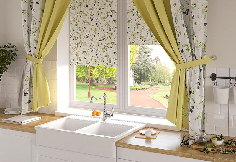 Как мы уже писали выше, ткань играет далеко не последнюю роль в оформлении интерьера. Потому, выбирая шторы для кухни, обязательно обратите внимание на состав материала. Нынче в моде как натуральные, так и смесовые ткани. Натуральные варианты, такие как лён, хлопок бамбук ценятся ха экологичность, гипоаллергенность и «дышащий» эффект. Они не только приятны на ощупь, а и выглядят благородно, добавляя интерьеру ощущение тепла и уюта. Тем не менее кухня – это особое пространство, где практичность выходит на первый план. Поэтому многие хозяйки предпочитают синтетические или смесовые занавески, ведь за ними проще ухаживать, поскольку они меньше мнутся, не впитывают запахи, быстро сохнут после стирки и дольше сохраняют форму. А если вдруг шторки испортились, то их не жалко выбросить и заменить на новые.