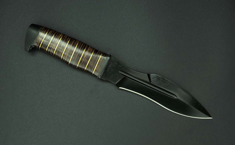 Ещё один нож с пафосным названием и историей, покрытой мраком. Поговаривают, что разрабатывался «Каратель» специально по заказу ФСБ России. Так ли это на самом деле, проверить получится едва ли. Известно, что за созданием оригинальной конструкции стоят мастера компании «Нокс», однако сегодня ножи с подобной вычурной архитектурой поставляет компания «Мелита-К».