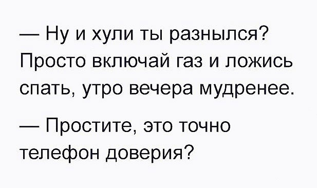 Воскресенье именно тот день, когда душа и тело должны отдыхать и наполняться позитивной энергией. А как иначе? Ведь впереди уже маячит новая трудовая неделя, в которую нужно вступать только с отличным настроением! Только юмор и улыбка помогут всегда быть в тонусе и не замечать неприятных рабочих моментов. Смотрите нашу воскресную подборку смешных мемов и картинок, заряжайтесь позитивом и не грустите! Всем успеха в делах и удачи во всём!!!