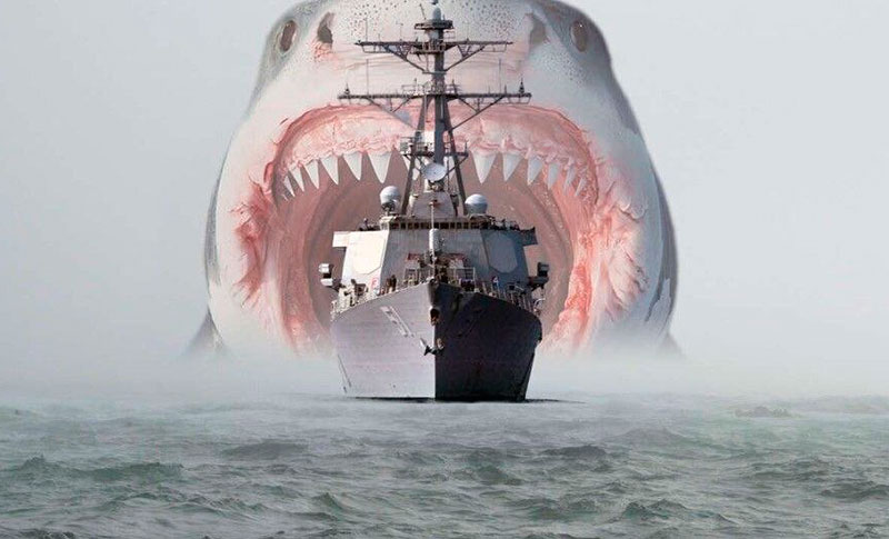 На вторые сутки место крушения окружили десятки голодных акул. Сначала их жертвами стали мертвые члены экипажа, которых они разрывали на части. Смешавшаяся с морской водой кровь привлекала все новых и новых хищников. Выжившие сбились в кучку, и вокруг них сомкнулось кольцо из плавников. Из одной группы в 80 человек к утру в живых осталось только 17...