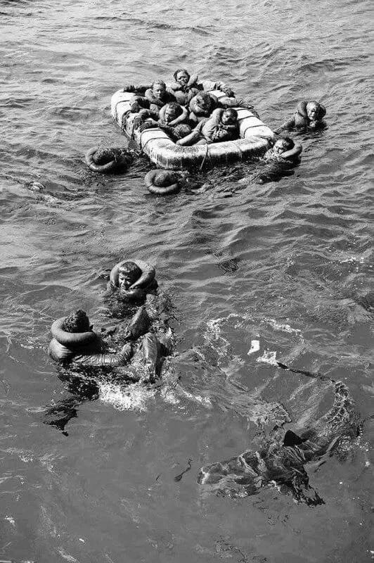 Через трое суток начали тонуть люди в спасательных жилетах, которые были изготовлены из волокон хлопкового дерева и могли обеспечить плавучесть только на протяжении 48 часов.