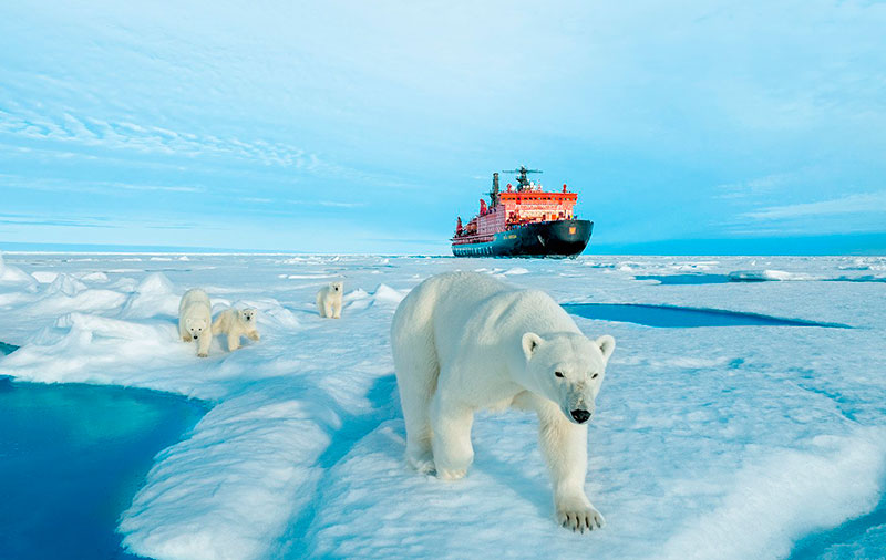 Арктика находятся на вершине планеты, на Северном полюсе. К Арктике относятся близлежащие острова Северного Ледовитого, Тихого и Атлантического океана, верхние края Евразии и Северной Америки. Кстати, название Арктика произошло от греческого слова «арктос», что переводится как «медведица».
