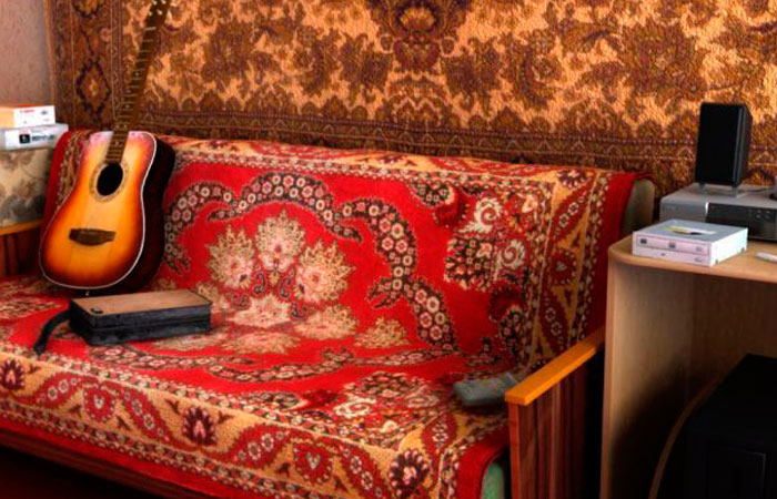 В 21 веке массивный ковер в красно-черном цвете, расположенный на стене, вызовет у взрослого поколения либо улыбку, либо слезы от приятных воспоминаний. Поскольку в прошлом веке в каждой благополучной семье он обязательно был. Причем, располагали изделие в самой главной комнате — центре квартиры.