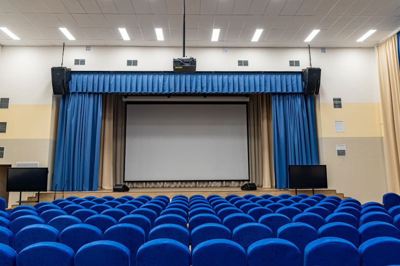 Для ДК и школьного актового зала чаще всего делают базовый комплект: