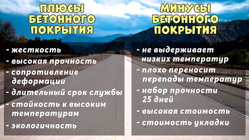 Помимо этого, бетонные дороги обладают еще несколькими серьезными плюсами. Помимо высокой прочности, жесткости и надежности, такие дороги хорошо переносят летний зной в отличие от асфальтных. Бетон лучше сопротивляется деформации, более экологичен, а также лучше отражает свет, что особенно полезно при движении ночью.