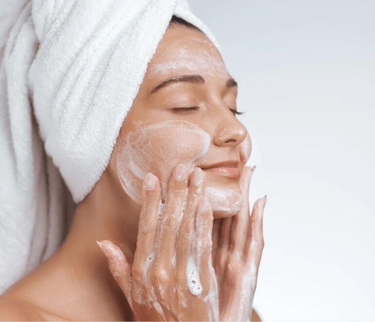 Лучше отказаться от агрессивных гелей и пенок. При умывании важно не пересушить кожу, поэтому стоит использовать средства с pH ближе к нормальному (от 4,5 до 6,5) и с минимальным пенообразованием.