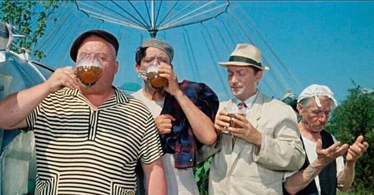 Самое сложное — найти замену пиву. В фильме «Кавказская пленница» актерам пришлось пить настоящий алкоголь, потому что других вариантов не было. Особенно тяжело дался этот момент Георгию Вицину, который был за трезвый образ жизни. Он сделал всего один глоток, думая что это квас, и на его лице сразу появилась гримаса отвращения — её даже оставили в фильме, потому что выглядело очень искренне. Тогда родилась нетленная цитата: «Жить – хорошо, а хорошо жить – ещё лучше».