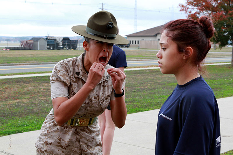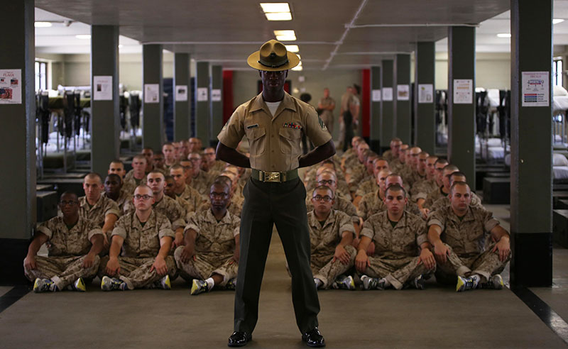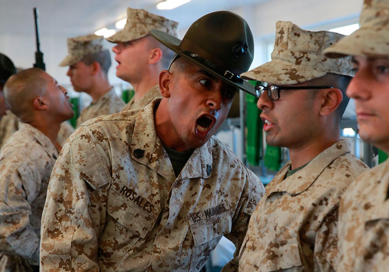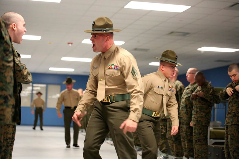 Инструктор по строевой подготовке не может, а должен постоянно орать на новобранцев. Особенно это касается Корпуса морской пехоты. Там служат самые суровые из инструкторов и действуют наиболее жесткие правила. Сержанту нельзя смотреть в глаза, сержанта нельзя касаться, сержанту можно отвечать только, обращаясь на «сэр» или «мэм» соответственно. И да, женщины среди инструкторов не такая уж редкость. Все правила подобного рода не высосаны из пальца, а основаны на психологии.